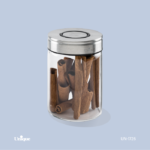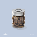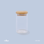 • 🪵 بانکه و ادویه شیشه ای درب چوب گرد 2